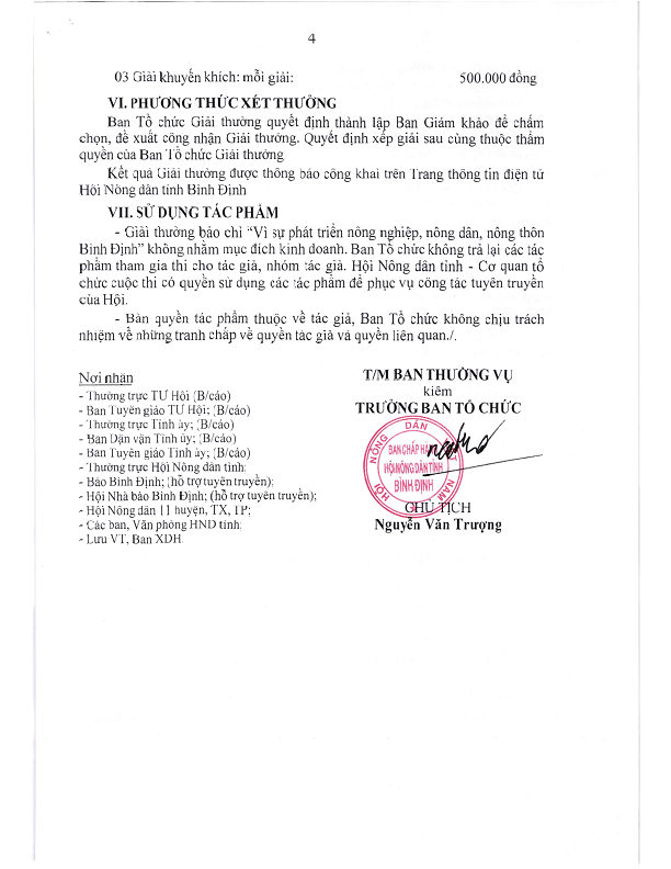 Thông báo Thể lệ Giải thưởng báo chí " Vì sự phát triển nông nghiệp, nông dân, nông thôn Bình Định"- năm 2024